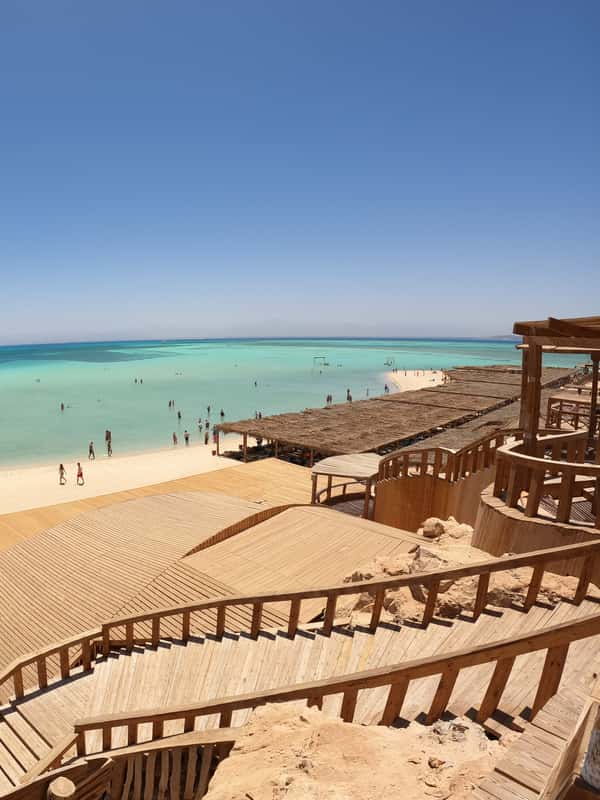 Enjoy a relaxing day on a 6-hour snorkeling boat cruise to Orange Bay Island, part of the Giftun Island National Park, from Hurghada. This trip allows you to discover the clear blue waters of the Red Sea, beautiful lagoons, and colorful coral reefs. The excursion includes two snorkeling stops to explore the vibrant underwater life. You will also spend approximately two hours on the stunning white-sand Orange Bay Island, where you can relax, sunbathe, and enjoy your included lunch. The island also offers a special play area for children.
